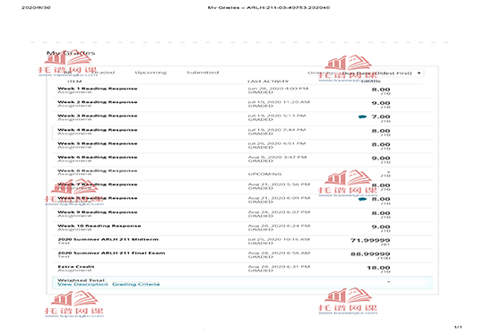 网课成绩单 HST.102.U801.SUMMER20.Amer+92